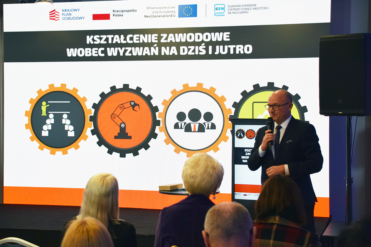 W dniach 27–28 listopada odbyła się konferencja „Kształcenie zawodowe wobec wyzwań na dziś i jutro”. Wydarzenie realizowane było w ramach projektu „Zbudowanie systemu koordynacji i monitorowania regionalnych działań na rzecz kształcenia zawodowego, szkolnictwa wyższego oraz uczenia się przez całe życie, w tym uczenia się dorosłych”. Celem spotkania była wymiana doświadczeń oraz wskazanie kierunków rozwoju edukacji odpowiadającej realnym potrzebom społecznym i gospodarczym. Konferencja zgromadziła przedstawicieli szkół, instytucji edukacyjnych, środowiska akademickiego, pracodawców oraz samorządów. Wydarzenie zostało objęte patronatami Ministra Edukacji Narodowej, Kujawsko-Pomorskiego Kuratora Oświaty oraz Marszałka Województwa Kujawsko-Pomorskiego.